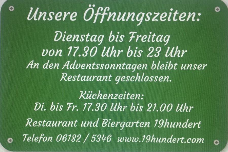Montag, Samstag und Adventssonntage Ruhetag